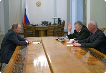 Vladimir Putin meets with Vladimir Zhirinovsky and Igor Lebedev