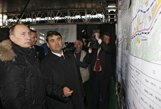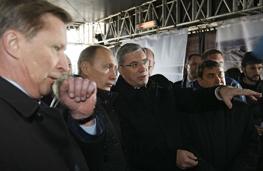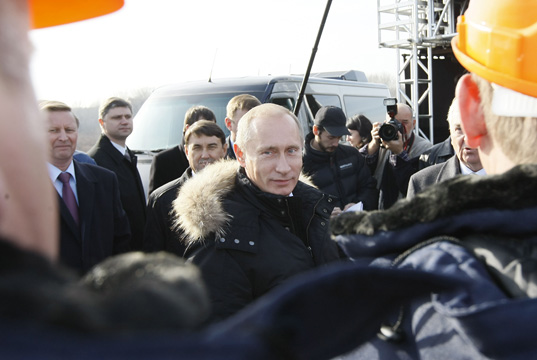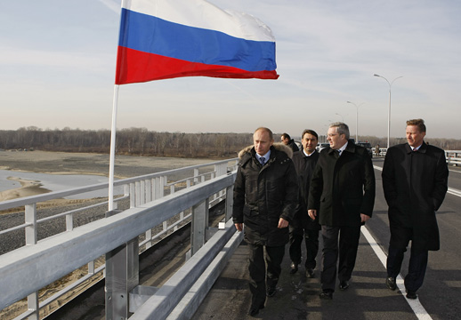 В.В.Путин, находясь с рабочим визитом в Сибирском федеральном округе, осмотрел участок федеральной трассы и мост через реку Обь севернее Новосибирска