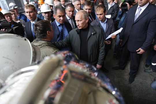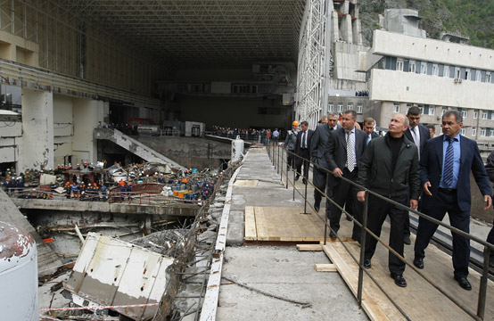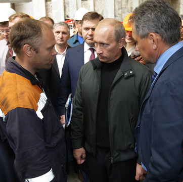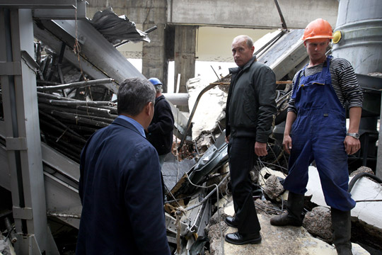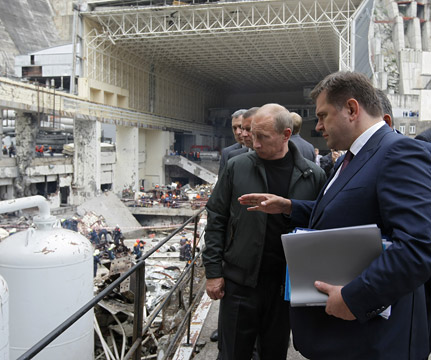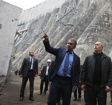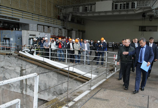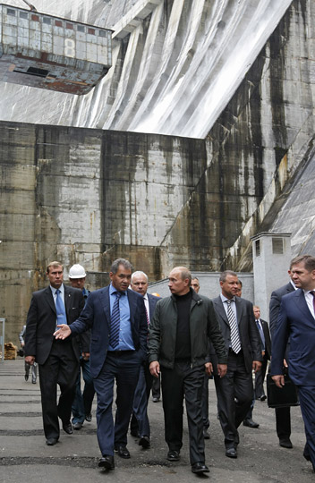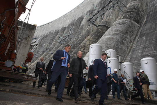 В.В.Путин, прибывший с рабочей поездкой в Республику Хакасия, посетил Саяно-Шушенскую ГЭС